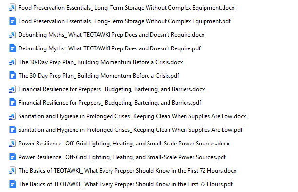 This isn’t just another “how-to” ebook. It is a masterclass in “The End of the World as We Know It” (TEOTAWKI). It provides your customers with the exact roadmap they need to navigate total societal shifts, economic collapse, and natural disasters with total confidence.