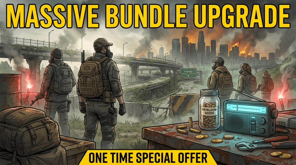 A: Not a chance. Every asset—article, meme, image, audio, and video—was created SPECIFICALLY for this bundle by a 26-year prepping veteran and Special Ops retiree. No copy-paste, no “seen-it-before” content.